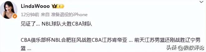媒体人“LindaWooo”发文点评“见证了, NBL球队大胜CBA球队